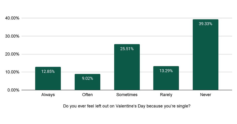 There are still traces of social pressure. About 27% say they sometimes feel pushed to be in a relationship during Valentine’s Day. Among singles, 26% admit they occasionally feel left out.
